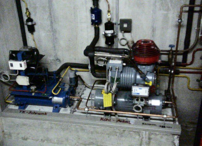 An der HTW in Chur ist für die Warmwasserversorgung eine Abwärmenutzung der Kälteanlage installiert. Der 500 Watt Tiefkühlkompressor (Minusanlage) und der 1500 W Kühlkompressor (Plusanlage) transportiert seine Abwärme in einen 500 Liter Warmwasserboiler. Dieses ist der Erste von 3 weiteren Boilern, welche mit Elektrizität geheizt werden und in Serie geschaltet sind.