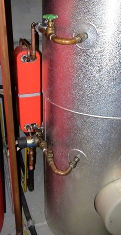 Die Wärmeabgabe des Minussystems erfolgt über einen Wärmetauscher unten im Warmwasserboiler und die des Plussystems über einen mit einem Plattenwärmetauscher, welcher mit einer eigenen Umwälzpumpe ausgerüstet ist. Wenn der Warmwasserboiler seine Solltemperatur erreicht hat, löst der im Kondensator ansteigende Druck ein Ventil aus, welches die Wasserzufuhr zum Kondensator öffnet und die Kondensatorkühlung sicherstellt.