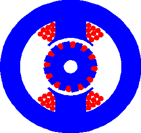 Beschreibung: Das Magnetfeld des Rotors kann mit elektrischen Gleichstromwicklungen (2 Schleifringe) oder Permanentmagneten gebildet werden. Die Wicklung ist meistens dreiphasig ausgeführt. Bei Schrittmotoren oft nur zweiphasig.