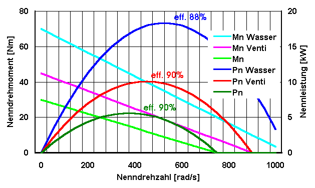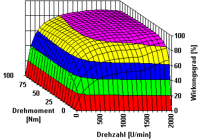Der Wirkungsgrad ist das Verhältnis von abgegebener zu aufgenommener Leistung. Der im Datenblatt eines Motors angegebene Wirkungsgrad gilt für den Betrieb bei der Nennleistung (bei Nenndrehzahl). Im Leerlauf oder im Stillstand haben allen Motoren den Wirkungsgrad Null.