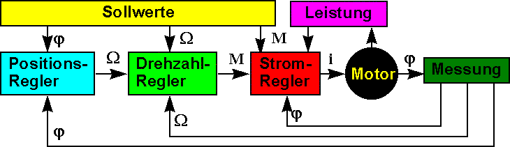 - Servoantrieb: Ein Servoantrieb ist ein Motor, der gut regelbar ist. Das kann eigentlich fast jeder der aufgeführten Antriebe (Gleichstrom, Synchron, Asynchron ...) sein, wenn er mit einem geeigneten Regelgerät gespiesen wird. Der Begriff Servoantrieb sagt nichts über die Regelgüte (Minimaldrehzahl, Reaktionsgeschwindigkeit, Genauigkeit, Drehmoment-Pulsationen usw.) aus. Der Begriff ist eher eine Abgrenzung gegenüber Stellantrieben (Auf, Stopp, Zu) oder zu Arbeitsantrieben für Pumpen, Lüfter, Mixer und andere.