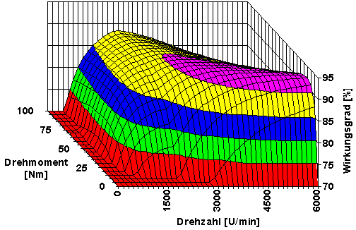 Synchronmotoren mit Permanentmagenten sind für Drehmomente bis etwa 30 Nm interessant. In Katalogen sind sehr selten Angaben über den Wirkungsgrad zu finden. Obwohl im Rotor eigentlich keine Verluste entstehen sollten, können die Motoren sehr heiss werden, vor allem bei höheren Nenndrehzahlen.