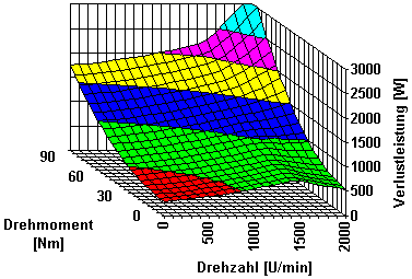 Die Verluste entstehen in erster Linie im Kupfer (den elektrischen Leitern) und in zweiter Linie im Eisen (den magnetischen Leitern). Die Verluste steigen quadratisch mit dem abgenommenen Drehmoment bei mehr oder weniger drehzahlabhängigen Leerlaufverlusten.