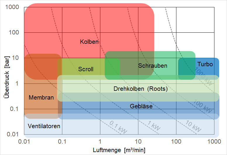 Es gibt unterschiedliche Kompressortypen, welche ihr typischen Einsatzbereiche haben.